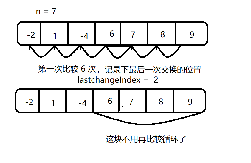 1 | // 冒泡排序的优化(适用于数组中大部分是排好序的数组) |