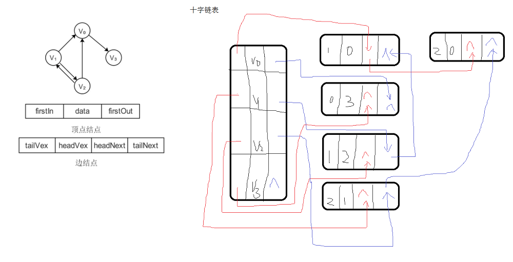 3.2 有向边存储图如下: