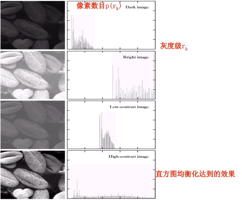 把原始图像的直方图变换为均匀分布(均衡)的形式,这样就增加了像素之间灰度值差别的动态范围,从而达到增强图像整体对比度的效果