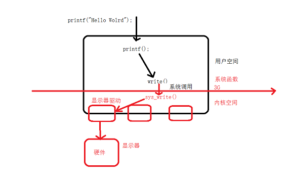 3-4G 是系统的空间(内核空间),这部分是由操作系统来管理,那么如果我们要操作这部分数据,只能借助系统提供的一些函数(系统函数),用户调用这些函数就称之为系统调用。